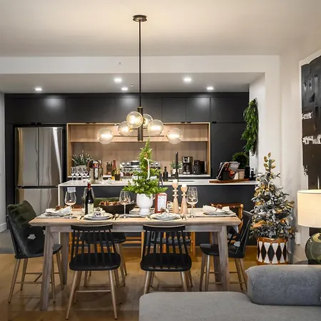 The 111 m^2 Villa Experience Le Solstice Ski-In-Out Pool Beaupre is situated 2.5 km from Chute Sainte-Anne and offers a swimming pool. Featuring an aqua park, a sundeck, and barbecue, this 2-bedroom apartment offers Wi-Fi for business or leisure needs.